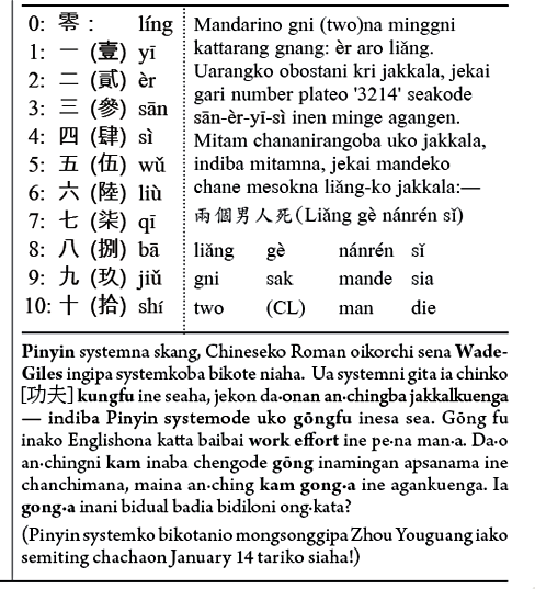 Pinyin: Ian Roman oikor-rangko jakkale Chineseko sena aro skina dingtangmancha tarigimin ong·a. Gam·atani kri oikorrango chinrang (diatricts) re·chapa. Chineseko Roman oikorchi sena jotton ka·ani skangonin dongoba Pinyin systemko 1950 bilsimangonisa linguistrang namemancha tarie chu·sokataha; jekon 1958 bilsio China sorkari publish ka·aha, 1982 bilsio ISO “international standard” ine ra·chakaha. Roman oikorko jakkaloba gam·atanirang altua ong·ja, maina Chinese ku·siko kattarangni ortorangan gam·atani sul aro bewalo pangchaka. Pinyin-ni ortoko Englisho donskaode spelled sounds ine ong·a.